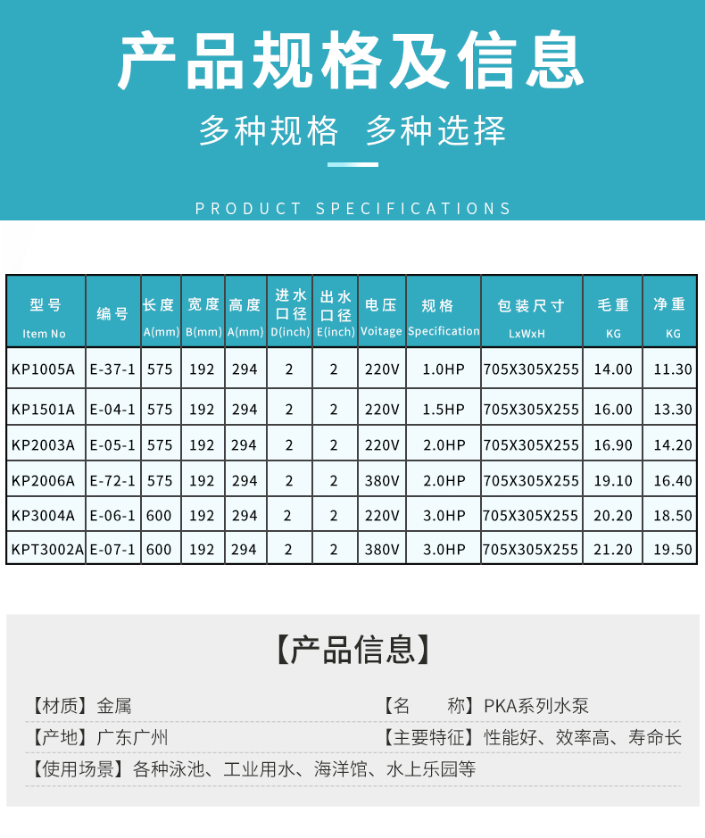 - 根據(jù)水力學(xué)原理設(shè)計(jì)的泵體,泵體、葉輪采用高強(qiáng)度工程塑料,經(jīng)久耐用。濾藍(lán)容量大,大大減少了清洗工作。性能好,效率高,加快了注水(灌溉)速度并提高了能源效率。適用于各種泳池、工業(yè)用水、海洋館、水上樂園等。